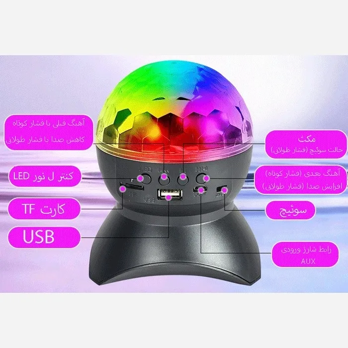 شما می توانید هم از طریق کلیدهای روی بدنه و هم به وسیله بلوتوث کنترل کامل جلوههای نور، طرحهای رنگی و سطوح روشنایی را در دست بگیرید و محیط مناسبی را برای هر مناسبتی سفارشی کنید، چه یک شب دنج و چه یک مهمانی هیجان انگیز.