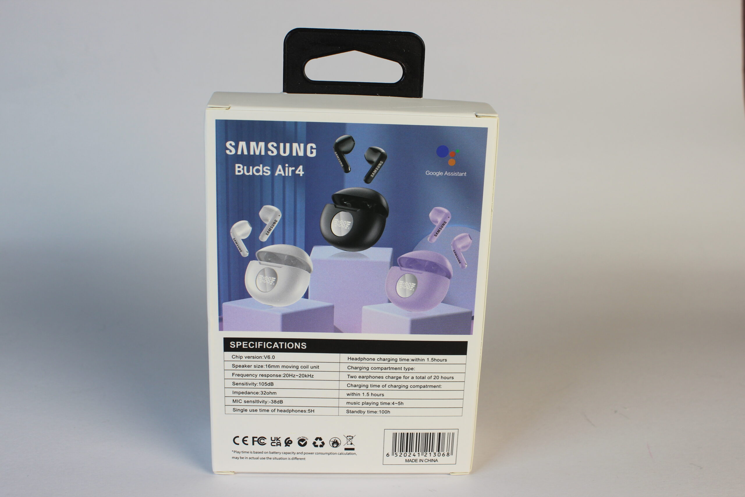 ایرپاد طرح سامسونگ مدل Galaxy Buds Air 4 یک هندزفری بلوتوثی بیسیم اقتصادی است که با الهام از طراحی سری Galaxy Buds ساخته شده و برای استفاده روزمره مثل موسیقی، تماس و استفاده عادی طراحی شده است.