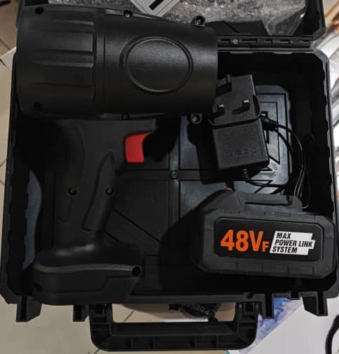دارای یک عدد باطری 48 ولت و یک آداپتور برای شارژ کردن دستگاه.