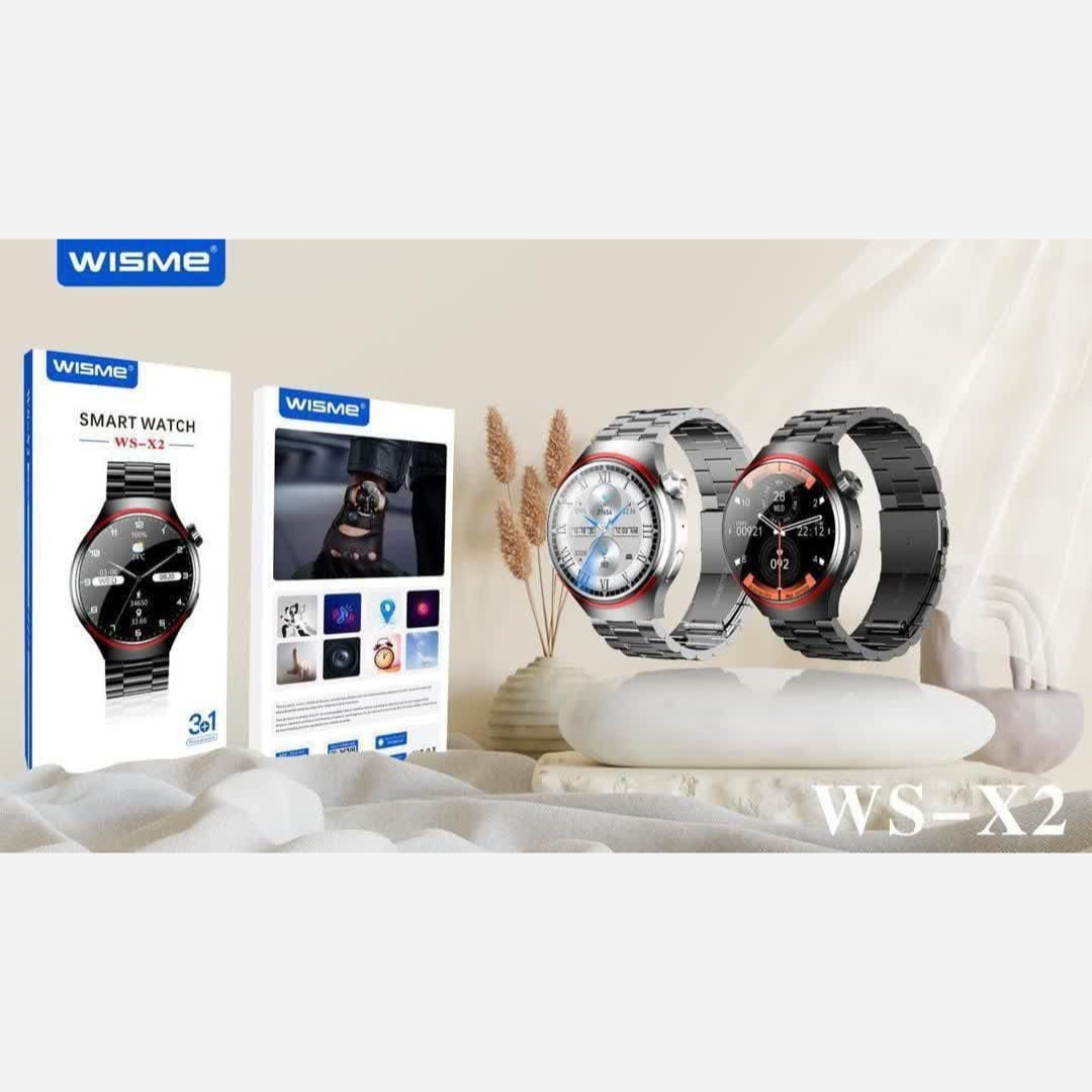 ساعت هوشمند WS X2 محصول برند WISME با سه عدد بند فلزی و چرمی کلاسیک و یک عدد بند سیلیکونی، با صفحه نمایشی گرد موجود در رنگ های مشکی و نقره ای با آلیاژ روی مقاوم مناسب کلاسیک پسندان است که میخواهند ساعت هوشمند با طراح کلاسیک داشته باشند. در کنار ویژگی های ذکر شده میتوان به صفحه نمایش 1.52 اینچی با وضوح بالا و لمس روان آن اشاره کرد.