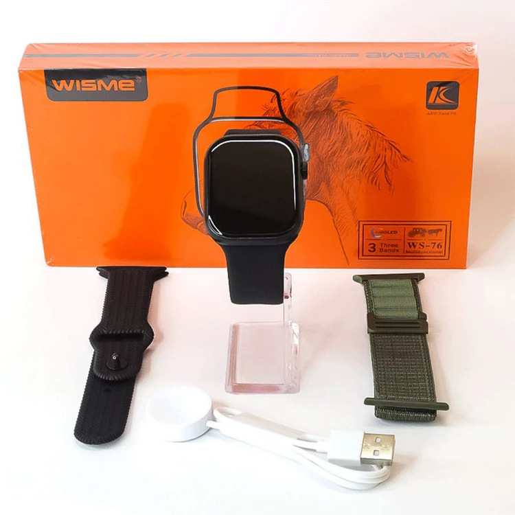 ساعت هوشمند WISME WS-76 | طرح اپل سری 9 مجهز به رنگ بدنه مشکی و سایز 45 میلی متر و همراه با دو بند با جنس سیلیکونی و پارچه ای میباشد. با این ساعت هوشمند دیگر نگران تماس های از دست رفته ی خود نباشید. با این محصول امکان برقراری تماس بصورت فوری در هرجا و هر مکان وجود دارد.