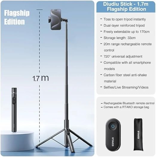 با قابلیت افزایش تا 170 سانتی‌متر، تضمین می‌کند که هرگز عکس‌های بی‌نقص را از دست ندهید، چه در حال گرفتن عکس‌های گروهی، ضبط ویدیوهای مسافرتی یا پخش زنده در رسانه‌های اجتماعی باشید.