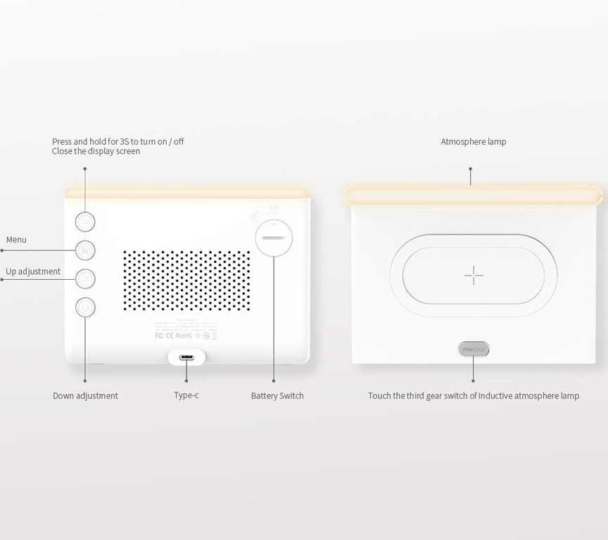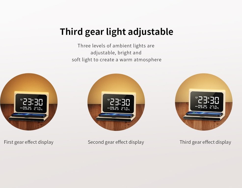 این محصول قابلیت استفاده به‌عنوان چراغ خواب را نیز دارد. نور ملایم و طراحی آرامش‌بخش آن فضای اتاق را در شب دلپذیرتر می‌کند و بدون ایجاد مزاحمت نوری، امکان مشاهده ساعت و دما یا شارژ گوشی را فراهم می‌سازد.