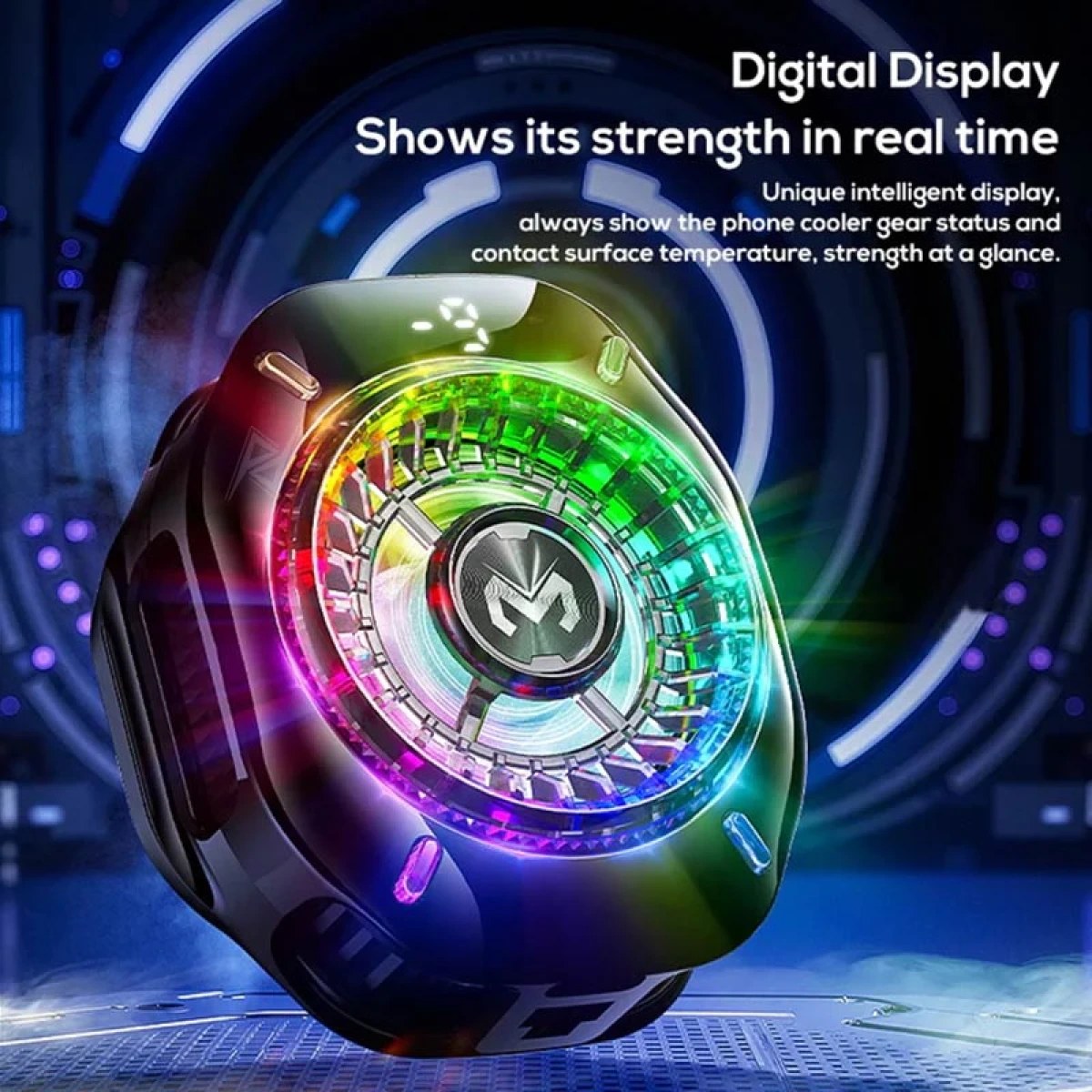 • طراحی چند ضلعی، بدنه ی براق و چراغ های بسیار جذاب و با کیفیتش، این خنک کننده را در لیست بهترین فن های موبایل 2025 قرار می دهد.