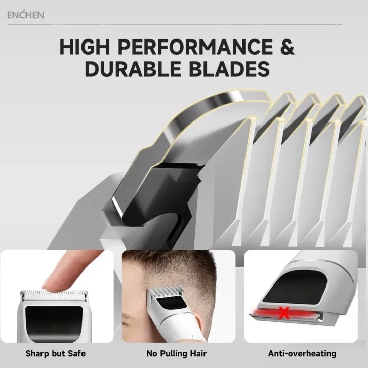 سری تیغه های ماشین اصلاح سر شیائومی Enchen Boost 2 از جنس نانو سرامیک تولید شده است. نانوسرامیک ها 1.6 برابر از استیل ضدزنگ محکم تر هستند. همچنین ظریف تر از فلز هستند. همچنین به علت استفاده از این جنس در تیغه ها، صدای تولید شده در حین کار بسیار کمتر و کمتر از 55 دسیبل می باشد. علاوه بر این به علت جنس نانو سرامیک حرارت دستگاه بسیار پایین می باشد. همچنین سری های تیغه های بیرونی بصورت گرد ساخته شده تا در حین اصلاح از هرگونه مشکل جلوگیری شود. تیغه اصلی دستگاه اصلاح Boost2 قابل جدا شدن است و به راحتی می توانید آن را تمیز کنید.