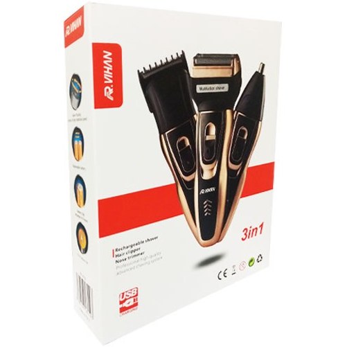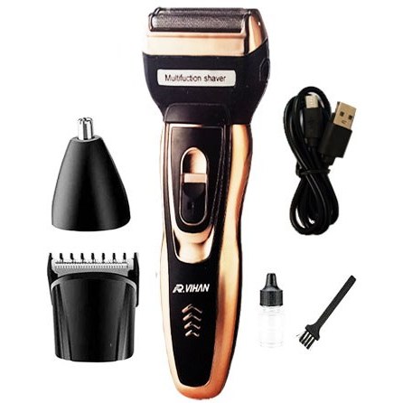 سه کاربری در یک دستگاه: شامل شیور صورت، تریمر مو (با شانه)، و موزن بینی/گوش