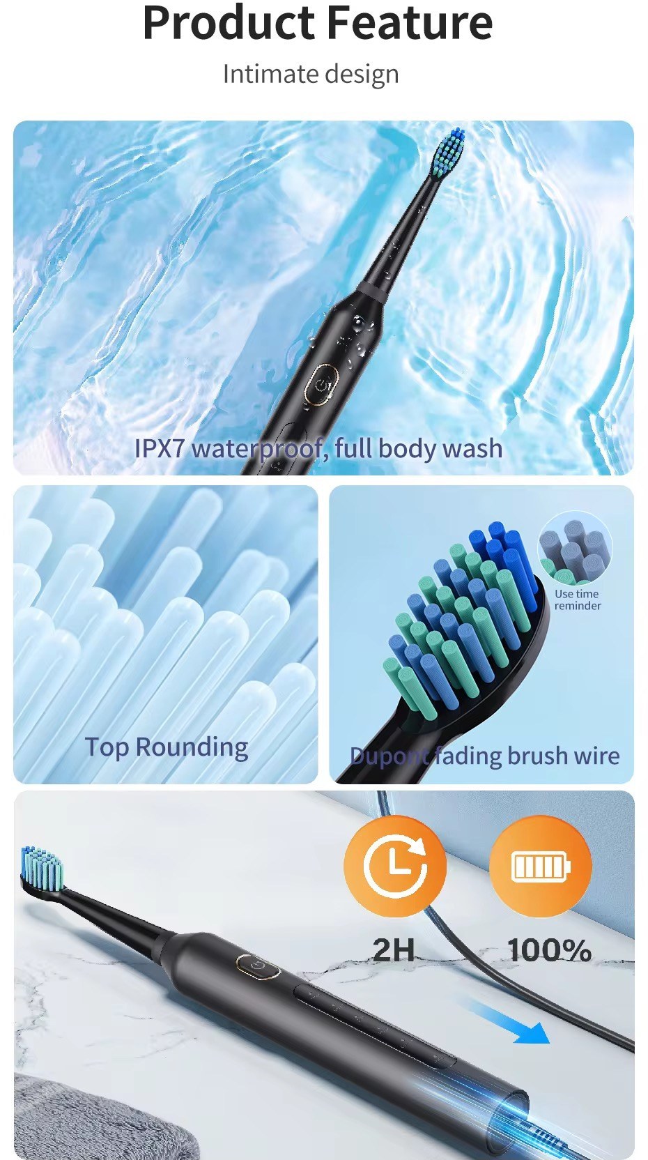 🔹 مسواک T5 با سرعت ۳۰٬۰۰۰ لرزش در دقیقه (VPM) و تایمر هوشمند ۲ دقیقه‌ای، با برس نرم و بدون BPA، دندان‌های شما را بدون آسیب به لثه‌ها تمیز می‌کند.