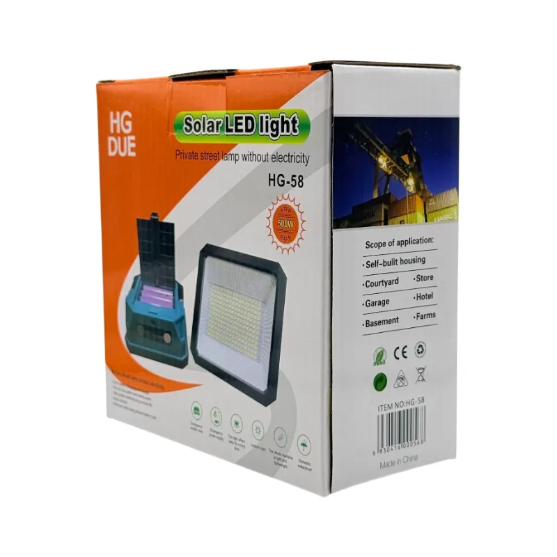 چراغ خورشیدی HG DUE مدل HG-58 یک راه‌حل نوین و مقرون‌به‌صرفه برای تأمین روشنایی معابر، حیاط، باغ، محوطه‌ی ویلا و فضاهای عمومی است. این محصول بدون نیاز به سیم‌کشی برق شهری، تنها با انرژی خورشید شارژ می‌شود و در شب روشنایی یکنواخت و قدرتمندی را فراهم می‌کند.