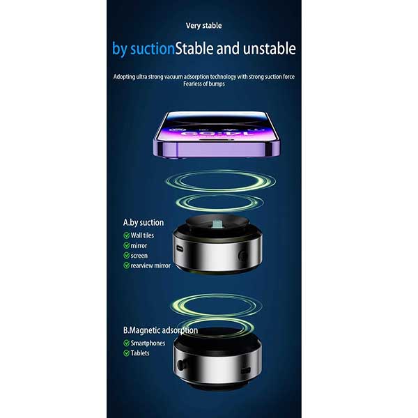 تکنولوژی جدید جذب خلاء: این هولدر موبایل از یک مکنده قدرتمند با فناوری جذب خلاء فوقالعاده استفاده میکند که گوشی شما را محکم در جای خود نگه میدارد، حتی در سنگلاخترین جادهها.