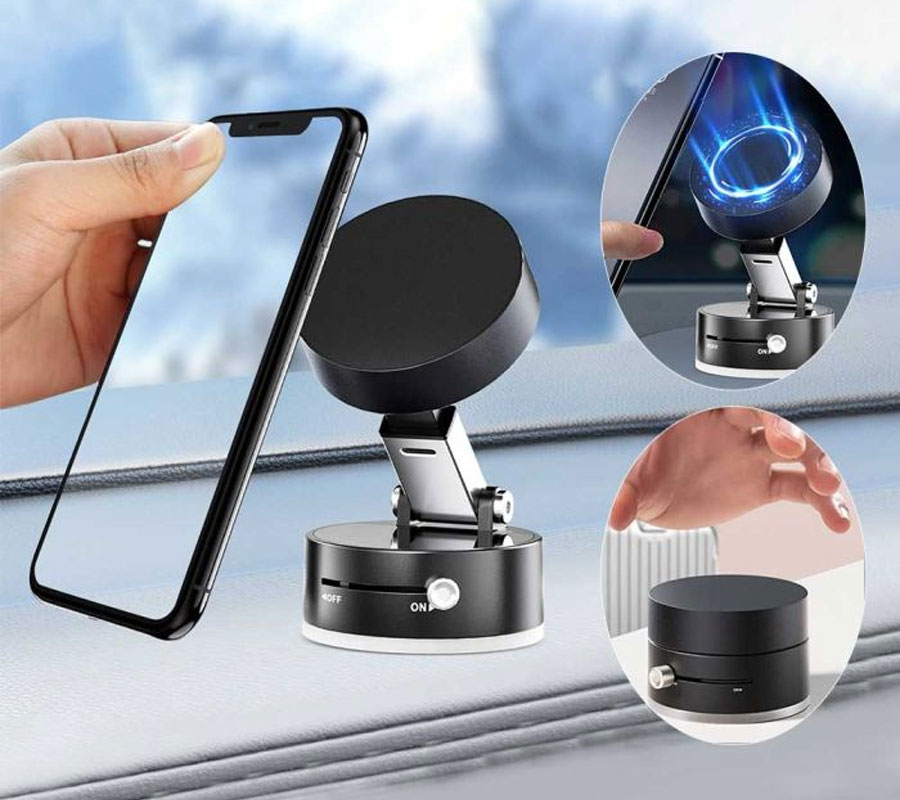 مکش خلاء مکانیکی: با استفاده از یک دکمه مکانیکی، پایه به راحتی به سطوح صاف مانند شیشه، فلز، کاشی یا داشبورد خودرو متصل می شود و بدون نیاز به برق یا باتری، ثبات بالایی را فراهم می کند.