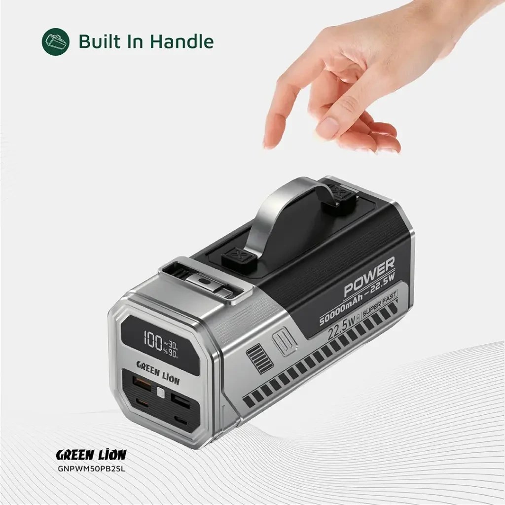 همراه داشتن پاوربانک امروزه به امری واجب تبدیل شده است. اگر بخواهید با گوشی خود مدت زمان زیادی کار کنید، به یک پاوربانک نیاز دارید تا نگرانی از بابت تمام شدن باتری گوشی خود نداشته باشید. حالا فکر کنید که می‌خواهید به گردش بروید. پس به یک پاوربانک مخصوص نیاز دارید که ظرفیت بالایی داشته باشد تا بتوانید ساعت‌های متوالی وسایل الکترونیکی خود را آماده به مصرف نگه دارید. پاوربانک 50000 گرین لاین Green Lion Power Max GNPWM50PB1SL توان 22.5 وات با ظرفیت بالا و پورت‌های متعدد یک همسفر فوق‌العاده برای کمپینگ‌های شماست. در ادامه با معرفی کامل این محصول همراه ما باشید.