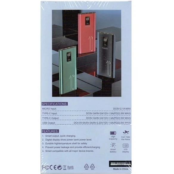 با دو درگاه خروجی USB و ورودی Type-C، پاور بانک فراری P260 میتونه بهصورت همزمان دو دستگاه رو با فناوری شارژ سریع (Fast Charging) شارژ کنه. وزن کم و ابعاد مناسبش باعث میشه بهراحتی داخل کیف یا جیب جا بشه، بدون اینکه مزاحم حمل روزمرهت بشه.
