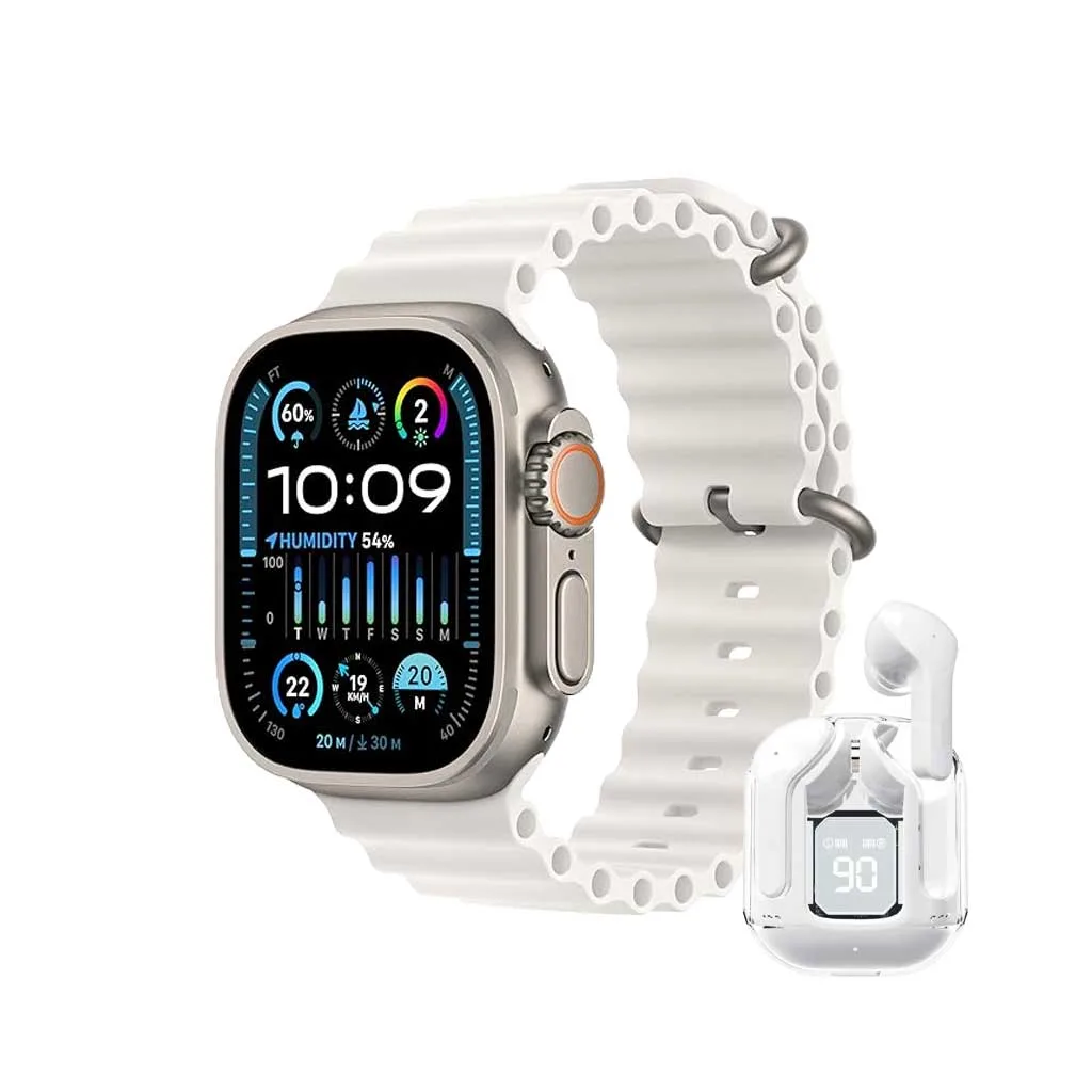 اسمارت واچ WS-X19 Ultra3 دارای یک جعبه زیبا است که درون آن علاوه بر ساعت هوشمند سری اولترا، 5 عدد بند سیلیکونی و آلپاین و یک ایرپاد هدیه فانتزی است. به خاطر نوع بسته بندی و اقلام همراه، این مدل گرینه مناسبی برای هدیه دادن به عزیزانتان می باشد.