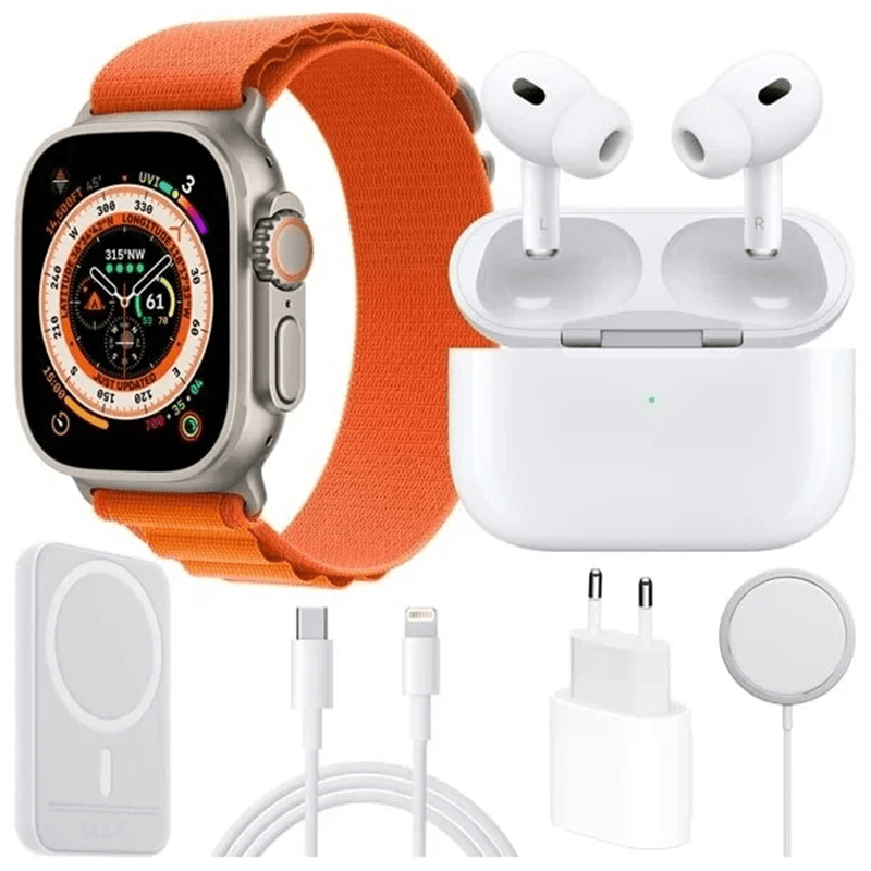 پک هدیه X8 Unique Combination دارای ساعت هوشمند مدل X8 Ultra , های کپی دقیق از روی مدل اپل واچ سری 8 اولترا سایز 49 میلیمتر ( جدید ترین و قوی ترین ساعت اپل ) است ، ساعت هوشمند موجود در پک هدیه X8 Unique Combination دقیقا بر اساس اپل واچ اولترا ساخته شده و نسبت به قیمت خود از امکانات خیلی فراوانی برخوردار هست یکی از نقاط قوت این ساعت هوشمند صفحه نمایش بزرگ ، با کیفیت و وضوحی بی نظیر ، روشنایی خیلی زیاد نمایشگر که باعث جذابیت آن شده و در زیر نور خورشید هم میتوان به راحتی با آن کار کرد.