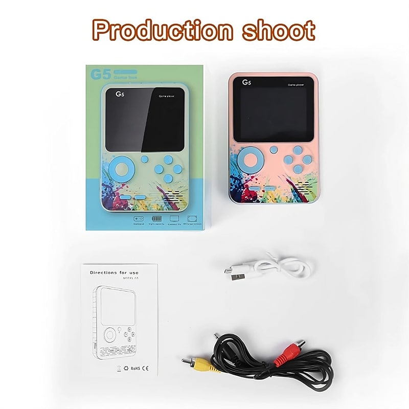 این محصول شارژی بودی و با یکبار شارژ تا 6 ساعت حالت آماده بکار. گیم باکس G5 یک کنسول بازی دستی برای کودکان و بزرکسالان می باشد که این کنسول دارای 500 بازی متفاوت بوده و متنوع است