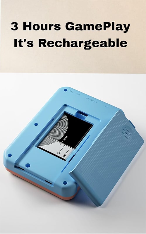 این گیم باکس شارژی می باشد که دارای باتری لیتیومی 1000 میلی آمپری است، و با یکبار شارژ تا 3ساعت میتوانید از این گیم باکس استفاده کنید.
