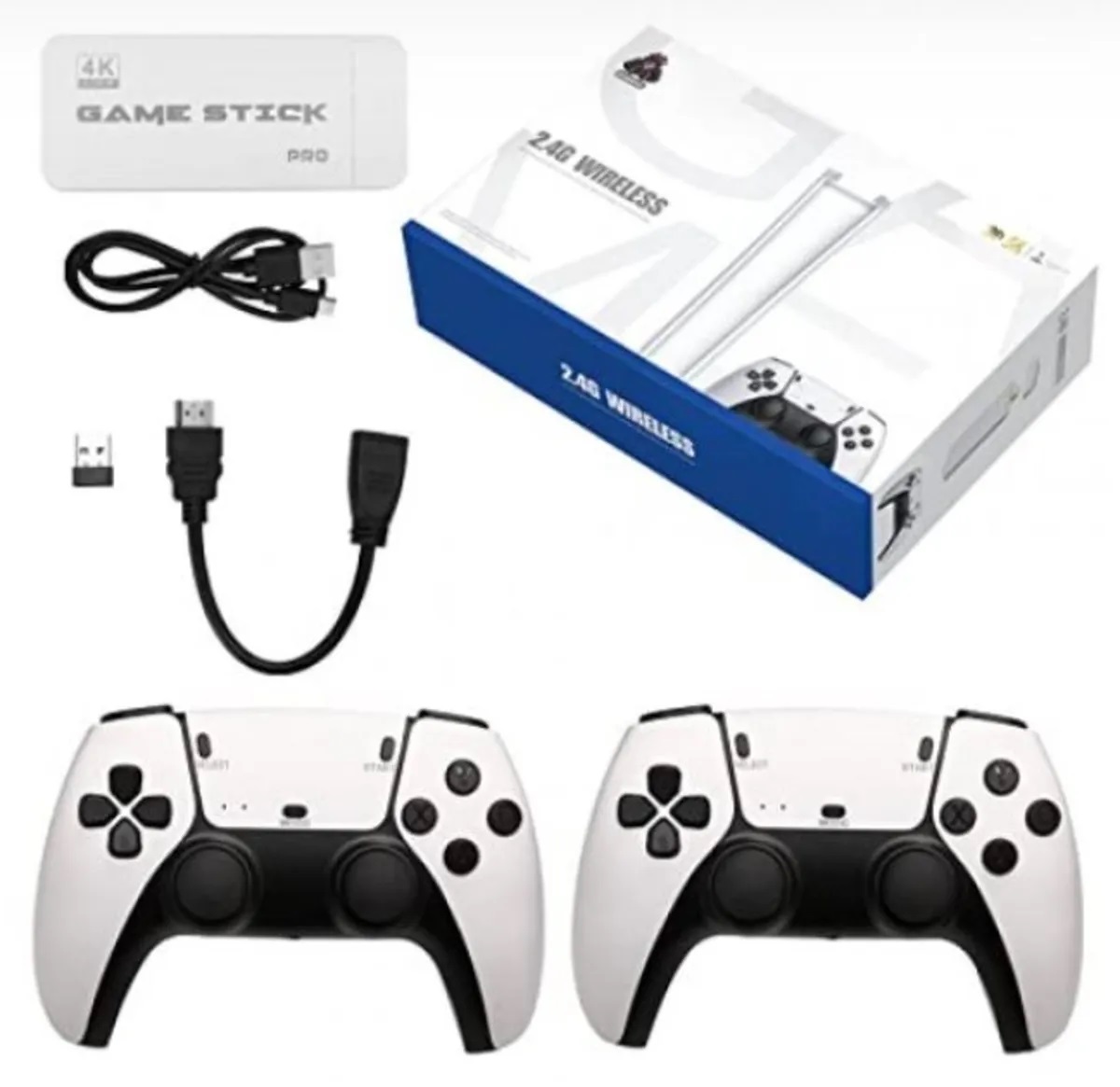 کنسول بازی Game Stick 4K Ultra HDیک کنسول بازی شبیه یک دانگل یا فلش بزرگ است که یک انتخاب عالی برای کسانی است که به بازی های ویدئویی علاقه دارند. این کنسول بازی دارای بیش از 15000 بازی نوستالژیک و قدیمی است که یادآور خاطره های دوران کودکی بین دهه 50 تا 70 می باشد. کنسول بازی Game Stick 4K Ultra HDاز رزولوشن 4K Ultra HD پشتیبانی می کند که تصاویری با وضوح بالا و رنگ های جذاب برایتان به نمایش می گذارد. این کنسول بازی خاطره انگیز با دو عدد گیم پد مشابه دسته های بازی پلی استیشن 5 عرضه شده و شبیه ساز تمام بازی های تا پلی استیشن یک شامل سگا، میکرو، آتاری، نینتندو، نیوجیو و MAME/FC/GB/GBA/MD/SFC از خصوصیات این کنسول بازی کوچک و جذاب می باشد. این کنسول از طریق پورت HDMI به تلویزیون، لپ تاپ، پروژکتور و کامپیوتر متصل می شود و گیم پد ها به صورت بی سیم به آن وصل شده و می توانید در صفحه نمایش بزرگ تر با رزولوشن تصویر عالی از بازی های بی شمار آن لذت ببرید. از مزیت های این کنسول استفاده آسان و حمل راحت آن است و امکان دانلود و نصب بازی جدید را با استفاده از کارت میکرو SD دارا می باشد. کنسول بازی Game Stick 4K Ultra HD یک هدیه ایده آل برای کودکان شما است که لحظاتی شاد و هیجان انگیز برای کودکان شما و خاطراتی خوش و نوستالژیک را برای بزرگسالان تداعی می کند.